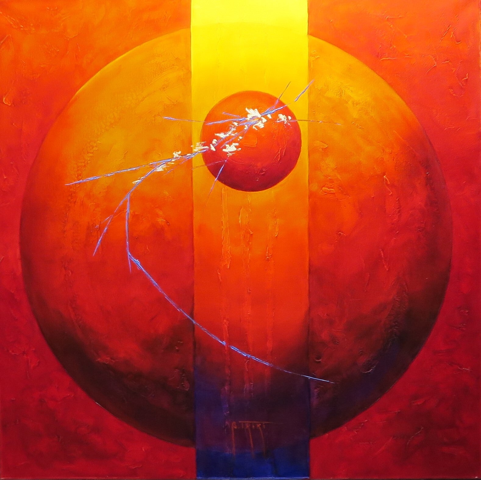 - L’artiste travaille aux couteaux et aux pinceaux.